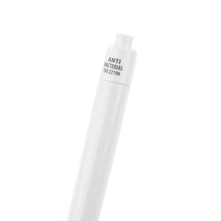 De antibacteriële pen Alfa is een interessante optie voor wie houdt van klassieke en praktische oplossingen. Dit model heeft een behuizing van ABS-kunststof met antibacteriële eigenschappen, waardoor hij nog functioneler wordt in een tijd waarin iedereen op zijn veiligheid let. Reclamepen De Alfa antibacteriële reclamepen is verkrijgbaar in zes kleurvarianten en kan bedrukt worden met uw logo of andere kleine afbeeldingen in full colour op de schacht. De Alfa antibacteriële promotie balpen is bovenal een praktische en nuttige gadget, die zeker lang gebruikt zal worden.