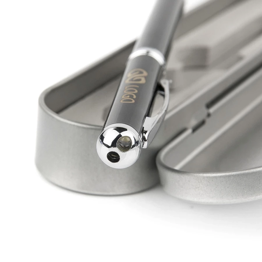 Een reclamepen kan een uiterst elegant ontwerp hebben, waardoor je klanten hem associëren met een moderne aanpak en professionaliteit. We zijn ervan overtuigd dat dit het geval zal zijn met de Laser Touch case pen. Deze kleine set ziet er zeer elitair en stijlvol uit. Zowel het lichaam van de pen als het etui zelf zijn gemaakt van metaal, zodat we er een inscriptie of logo in kunnen lasergraveren. De Laser Touch promotiepen in etui is ideaal als geschenk voor vaste klanten of als blijk van waardering voor collega's.