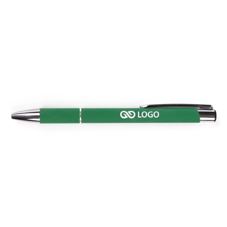 De Zoe pen is een praktische promotionele gadget die je kunt uitdelen aan je klanten op bedrijfsevenementen, beurzen, conferenties en zakelijke bijeenkomsten. De vulling van de pen wordt ontgrendeld door op de knop aan de bovenkant te drukken. De kleur van de vulling is blauw, maar het is mogelijk om een zwarte vulling te kopen - in dat geval moet je zelf de voorraad vervangen. Je kunt de pen lasergraveren - aan de rechter- of linkerkant - met een maximale grootte van 55 mm x 6 mm. Het is mogelijk om pennen in meerdere kleuren te bestellen. Voor een comfortabele grip is het product bekleed met rubberachtig plastic.