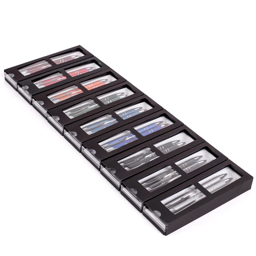 De Cosmo 3-delige set is een elegante set die bestaat uit een pen, stift en potlood. De set is verkrijgbaar in verschillende kleuren. Hij is gemaakt van aluminium en de opdruk wordt gemaakt met een lasergraveertechniek. Het formaat van het ontwerp op de pen en het potlood is 55x6 mm, op de pen 50x6 mm. De gravure kan aan de rechter- of linkerkant worden geplaatst. De hele set is verpakt in een elegant doosje. Zo'n set promotie gadgets kan gebruikt worden bij het overhandigen aan een klant als bedankje voor de prettige samenwerking.