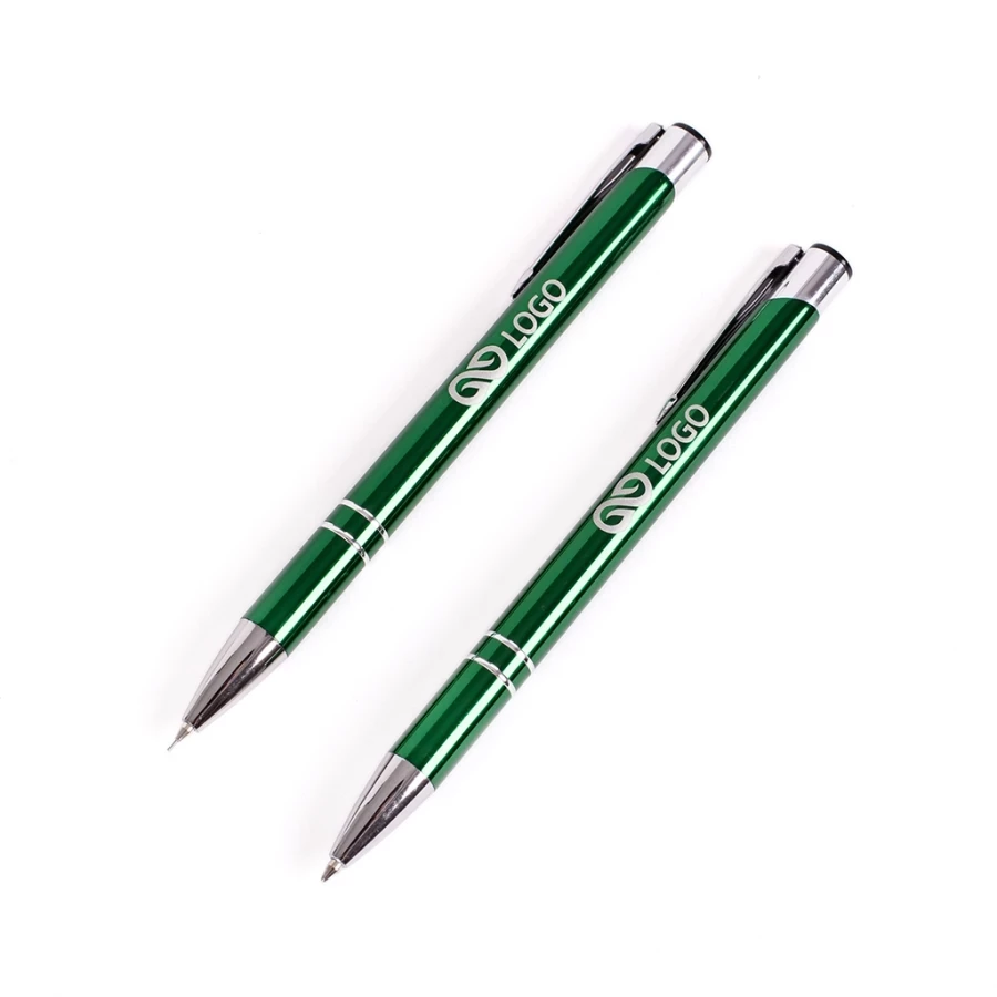 De Cosmo 2-delige pen + potlood set is de perfecte basis voor een elegante reclame gadget. De elementen zijn gemaakt van aluminium en de kleur is afhankelijk van de individuele voorkeur van de klant. De pen en het potlood kunnen worden gedecoreerd met een ontwerp dat met een lasergravure is gemaakt. Dit kan een bedrijfslogo zijn, wat een effectieve reclame zal zijn. Deze set zal de test doorstaan als geschenk tijdens zakelijke bijeenkomsten. Daarnaast kan het een esthetisch geschenk zijn voor uitstekende medewerkers en potentiële klanten.