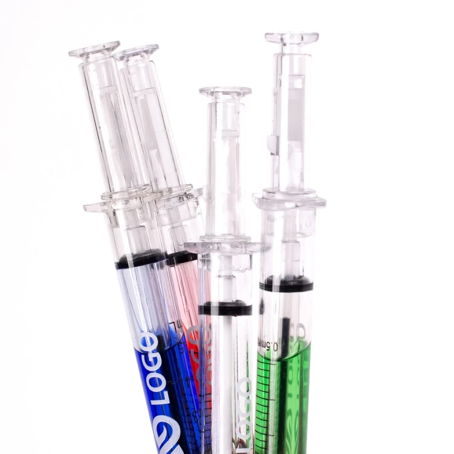 Een reclamegadget dat zich niet alleen als praktisch, klein en goedkoop cadeau moet bewijzen, moet zich ergens mee onderscheiden van de concurrentie. Traditionele, zelfs de meest elegante pennen zijn allang zo gewoon geworden dat bijna niemand er aandacht aan besteedt - ze zijn er gewoon. Dit is anders als het gaat om zo'n intrigerende en opvallende vorm als de spuitpen. Als je creativiteit boven alles stelt en je bedrijf niet bang is voor gedurfde acties en promotiecampagnes, kun je het bedrijf en je klanten een boost positieve energie geven in een zeer praktische verpakking zoals een interessant uitziende pen.