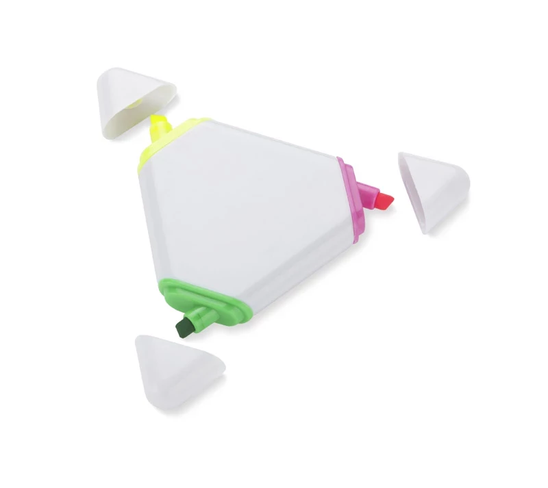 De Triangle markeerstift is een innovatieve en functionele promotionele gadget die drie kleuren markeerstiften combineert in één compacte unit. Dankzij de driehoekige vorm en het ergonomische ontwerp is het handig in gebruik en makkelijk op te bergen. De mogelijkheid om je logo te bedrukken met tampondruk of UV-print maakt de Triangle highlighter een effectief reclamemedium, ideaal voor beurzen, conferenties of als geschenk voor klanten. Het praktische en aantrekkelijke ontwerp maken het een veelzijdige promotionele gadget die zeker gewaardeerd zal worden door de ontvangers.